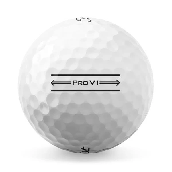 Featuring an enhanced alignment sidestamp for improved aim and accuracy, the Titleist® Pro V1® Enhanced Alignment golf ball offers total performance and features longer distance, very low long game spin, penetrating flight, even more Drop-and-Stop™ greenside control and softer feel.